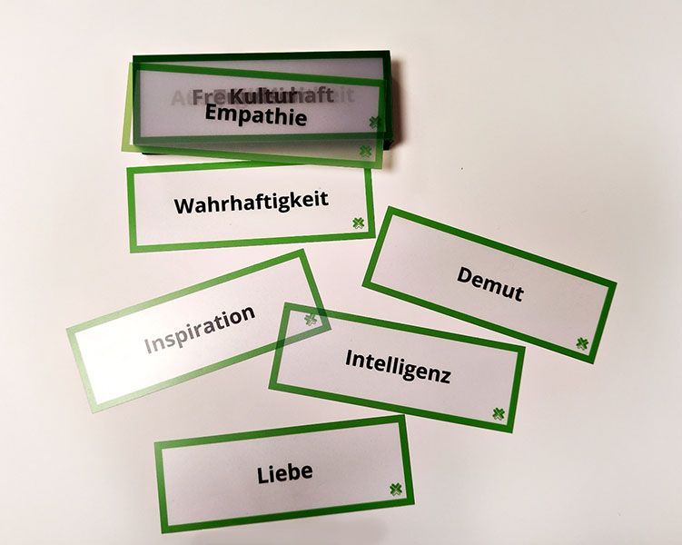 Werte-Karten im praktischen Visitenkartenformat.